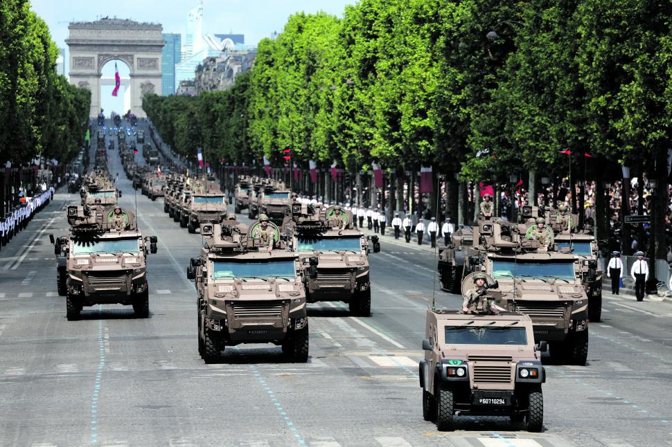 BLINDADOS. Vehículos y soldados marcharon por la avenida más emblemática de París, en el Día de la Bastilla.