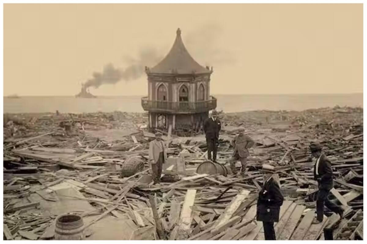 Una de las calles de Coquimbo (Chile) después del tsunami producido por el terremoto originado en Atacama en noviembre de 1922. Biblioteca Nacional de Chile