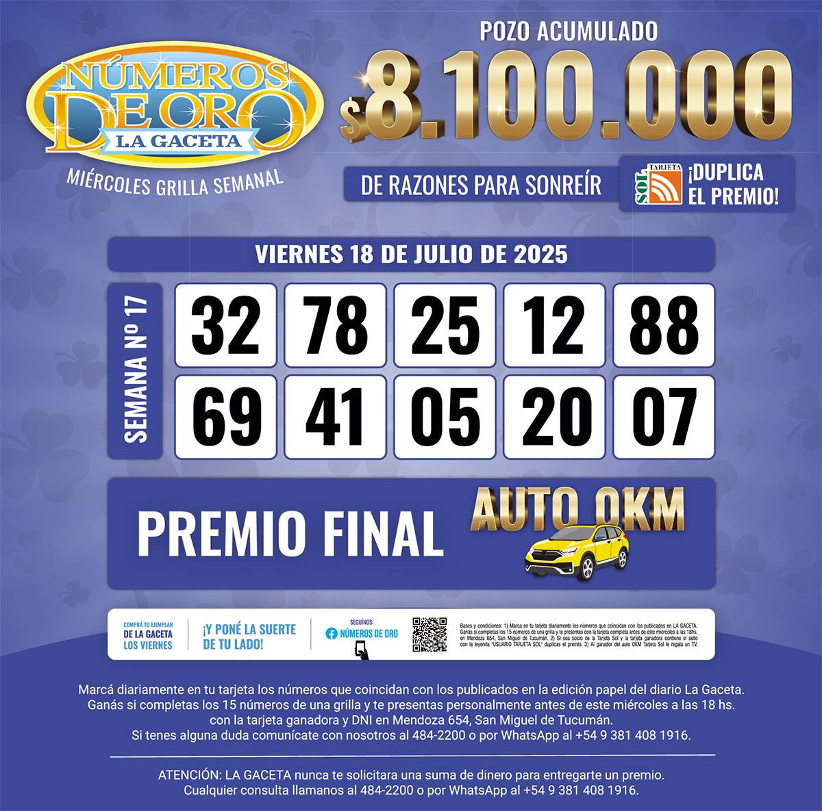 Los Números de Oro de LA GACETA del 18 de julio de 2025