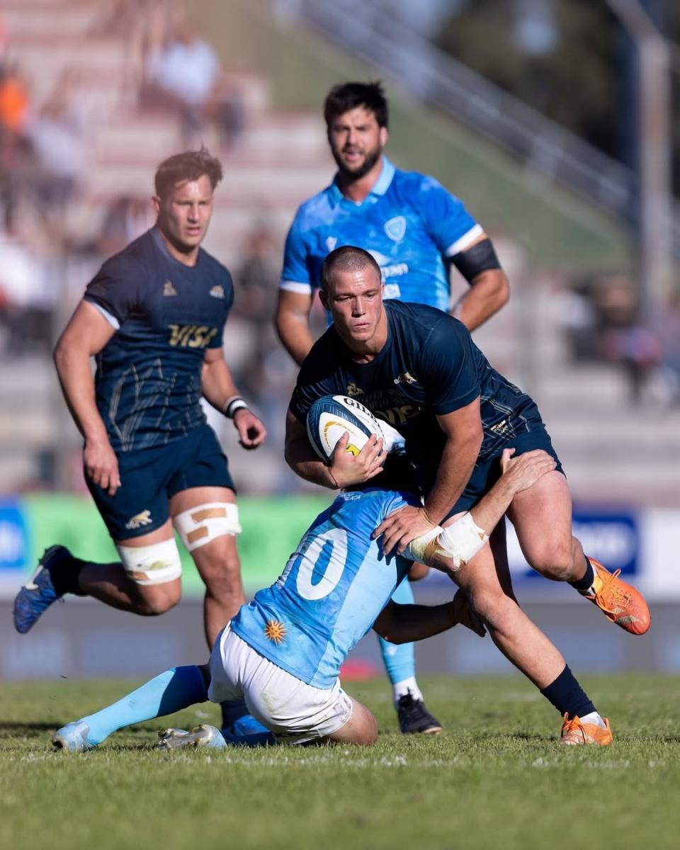 FUERTE. Benjamín Elizalde se lleva la ovalada. El back salteño juega actualmente en Bristol Bears de Inglaterra.