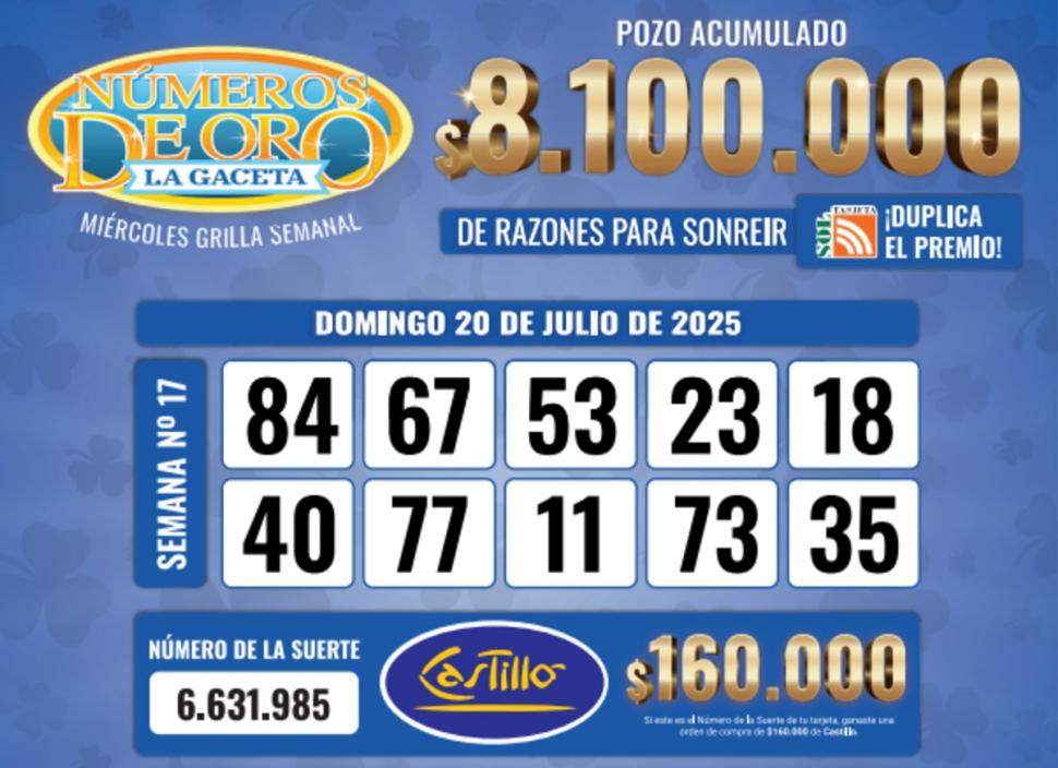 Los Números de Oro de LA GACETA del 20 de julio de 2025