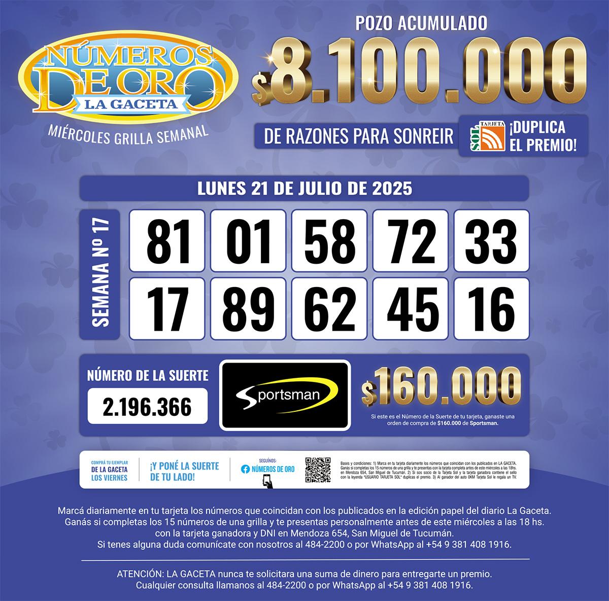 Los Números de Oro de LA GACETA del 21 de julio de 2025