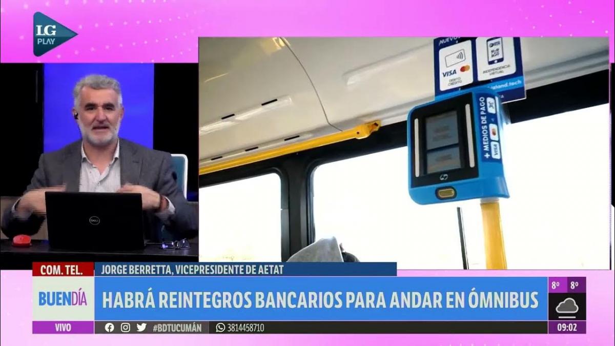 Jorge Berretta, vicepresidente de AETAT, afirmó que ya están vigentes las promociones de reintegro del valor del pasaje para usuarios de líneas interurbanas en Tucumán. Según dijo en LGPlay, el pasajero puede obtener hasta un 90% de reintegro pagando con el método contactless de Visa.