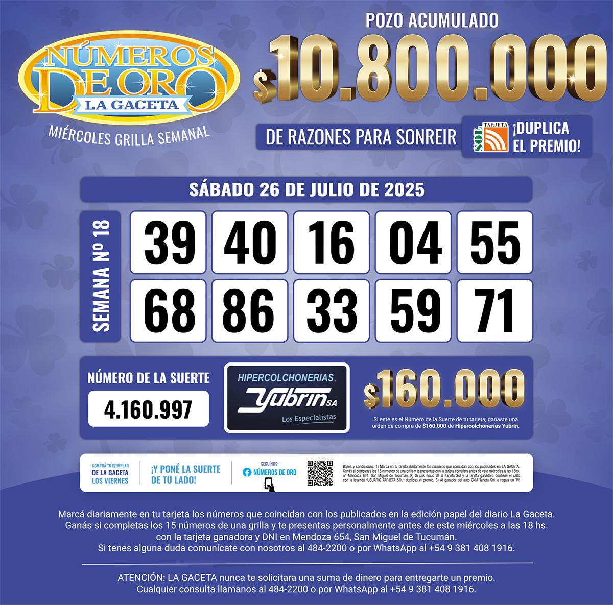 Los Números de Oro de LA GACETA del 26 de julio de 2025