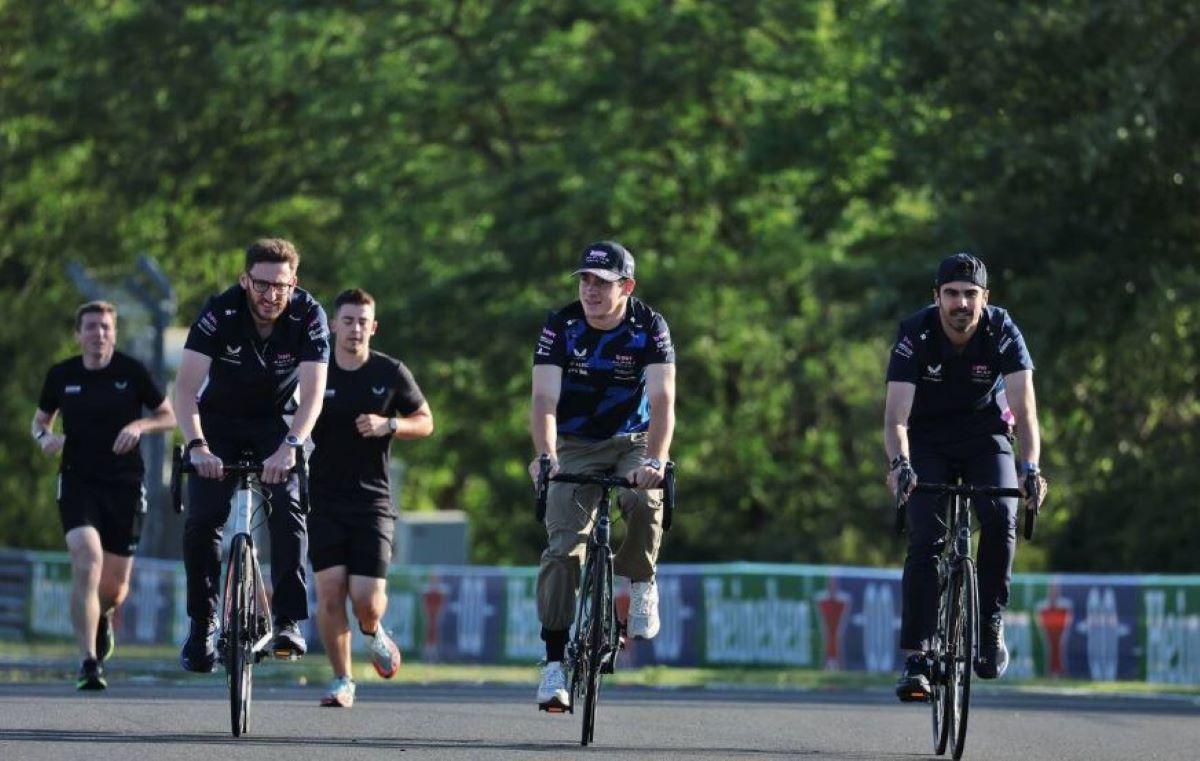 RECONOCIMIENTO. Colapinto (en el medio) transitó por el autódromo húngaro en bicicleta.