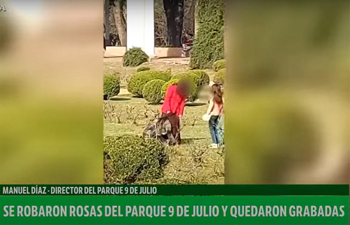Alguien que pasaba por el parque 9 de julio filmó a dos personas robando rosas en el Rosedal después de que se hizo la entrega de estos esquejes. Intentaron sacar la planta, no podían, y forzaron hasta que se la llevaron. También hubo otros robos, según confirmó Manuel Díaz, director del parque.