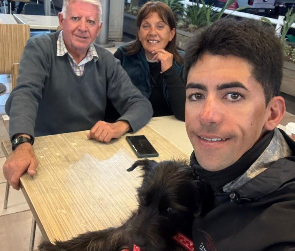 DE PASEO. Macías hace la selfie, con su perro Titán y sus padres en un paseo por un shopping de Yerba Buena.