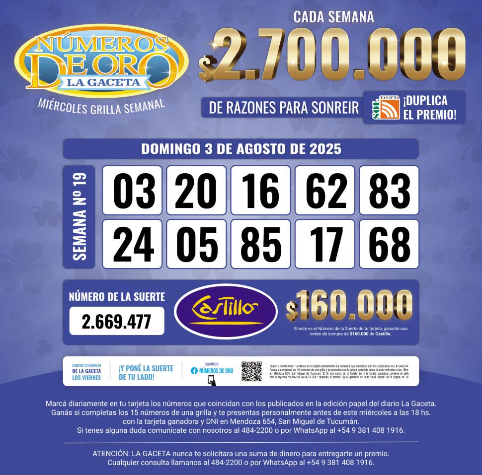 Los Números de Oro de LA GACETA del 7 de diciembre de 2025