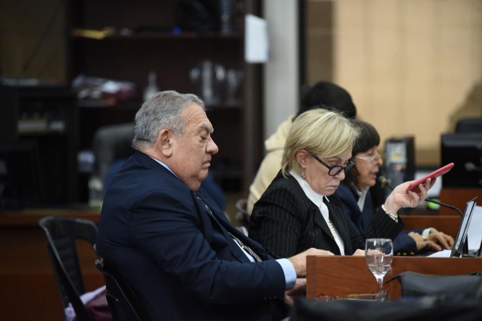 PRIMER DÍA DE ALEGATO. Juan Alberto Cerisola,.junto a sus defensoras, Silvia Peyracchia y Rosa Luz Casen. La Gaceta / foto de Analía Jaramillo
