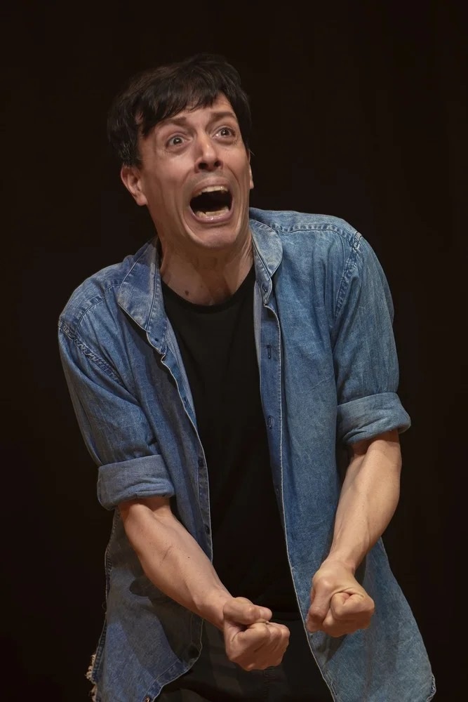 La construcción escénica respira por la labor de Peloni. “Construir a Beto fue un trabajo en capas, como abrir una mamushka. Son muchos personajes -desde conocidos hasta el director, sus compañeros de elenco o el vestuarista, a quienes conocemos desde su mirada- los que se van contando en la obra desde el enojo del mío. Eso le desencadena un desequilibrio interno y empieza a confundir las escenas y lo que ocurre en escena y en su vida. Debíamos entender también que se está relatando la historia, lo que genera algo muy divertido que fue muy arduo de hacer”, adelanta.