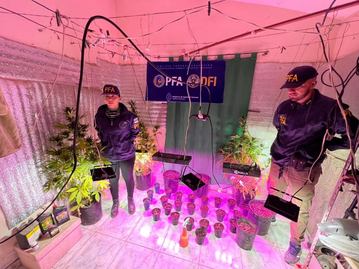 Durante el allanamiento, los agentes federales irrumpieron de forma sorpresiva y lograron incautar más de 50 plantas de cannabis sativa en distintas etapas de desarrollo, dosis de cocaína, marihuana fraccionada lista para la venta, fertilizantes, plantines y otros insumos relacionados con el cultivo y procesamiento.
