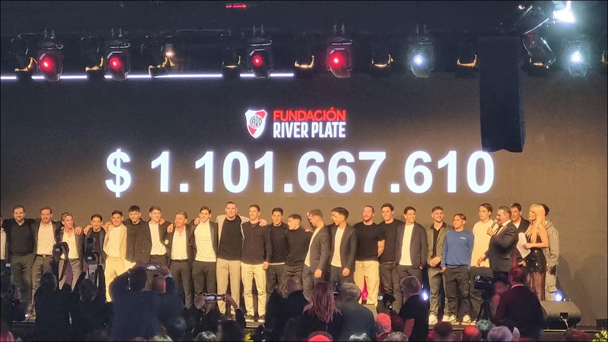 La Fundación River celebró en Puerto Madero la 12° edición de su cena anual solidaria y alcanzó una recaudación histórica: $1.101.667.610. La cifra superó ampliamente lo obtenido en 2023 ($849 millones) y permitirá financiar los programas que la institución desarrolla en clubes de barrio y comunidades de todo el país, bajo el lema “Grandeza es estar donde hay que estar y hacer lo que hay que hacer”.