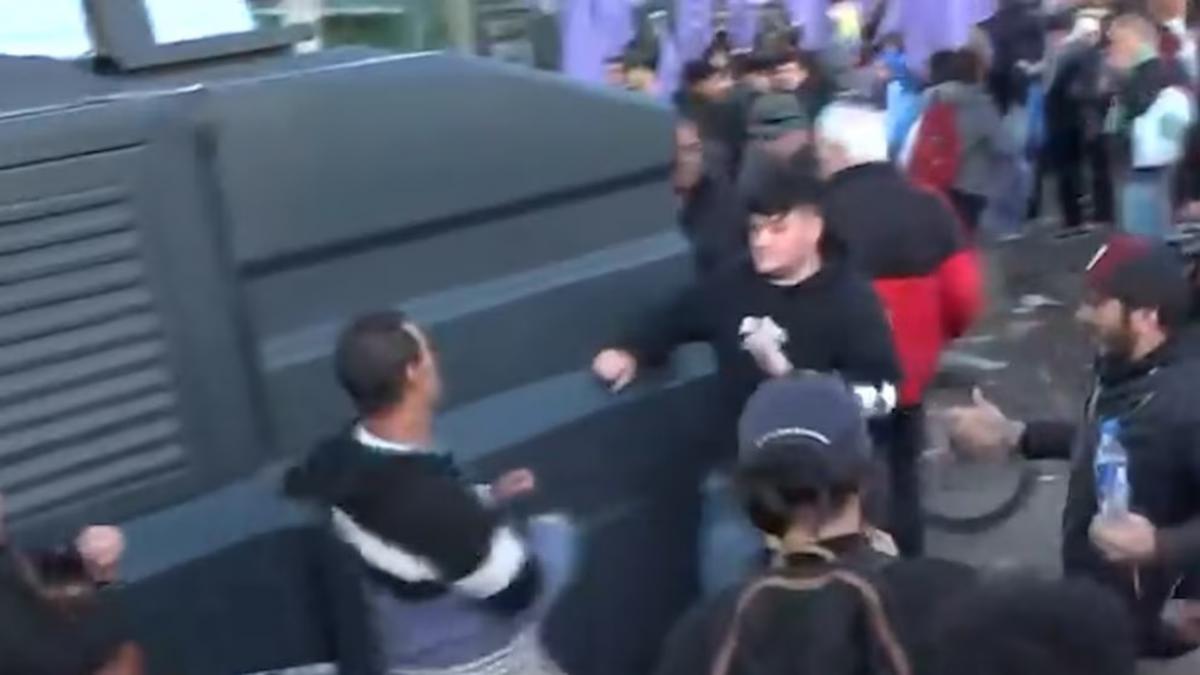 La reacción fue inmediata: gritos, empujones y golpes de puño entre algunos hombres que no llegaron a desbordar la situación, pero reflejaron el clima de hostilidad entre militantes libertarios, vecinos y simpatizantes peronistas.