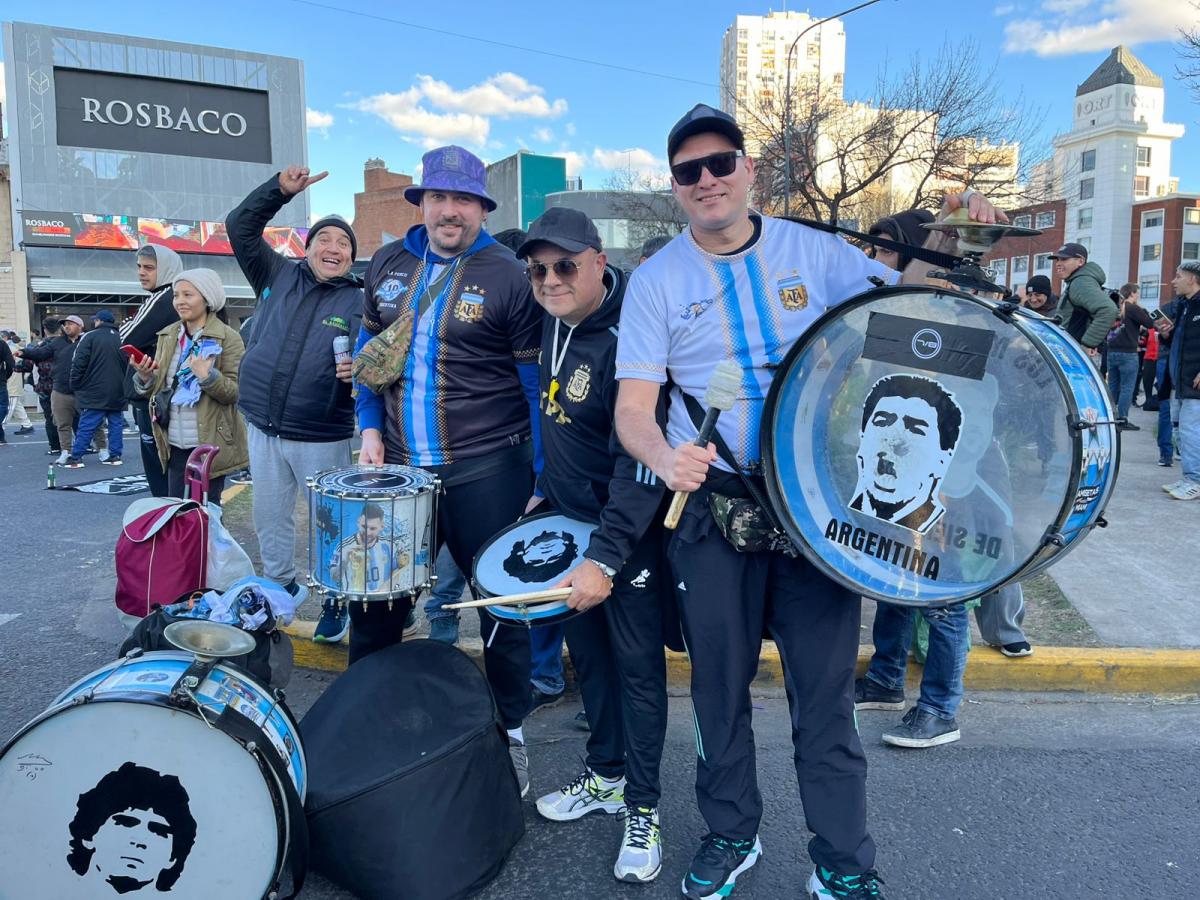 La historia empezó en Sudáfrica 2010, pero tomó fuerza en Qatar, donde se animaron a personalizar los bombos y plantarse como la hinchada que no deja nunca de sonar. “Fue complicado llevar todo, porque sale una moneda. Pero la gente nos ayudó un montón. Hacemos rifas, colaboran amigos… siempre a pulmón”, explicó, casi tapado por el eco de una trompeta que arranca un “Muchachos” improvisado.