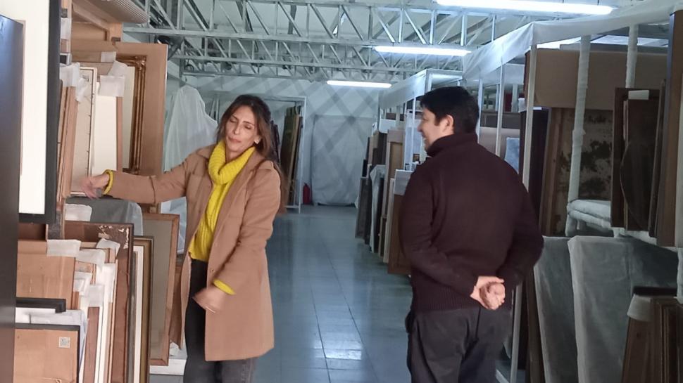 Obras de Ezequiel Linares están allí, en alguna estantería, y como si contrastaran en un rack arriba estaba la pintura de Gerardo Ramos Gucemas “Figura”, de 1974, y abajo, un paisaje de Luis Lobo de la Vega. Trabajos de Miriam Holgado y grabados de Lía Rojas Paz se pueden ver en esta inmensa sala, en la que los ventiladores están encendidos (por la humedad) y las esculturas están tapadas con enormes mantos blancos.