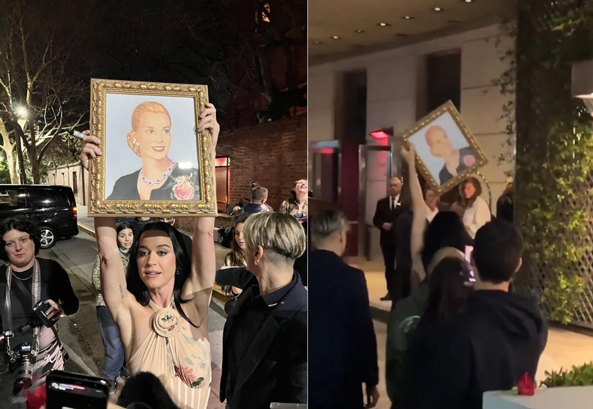 Katy Perry desfiló con un cuadro de Eva Perón