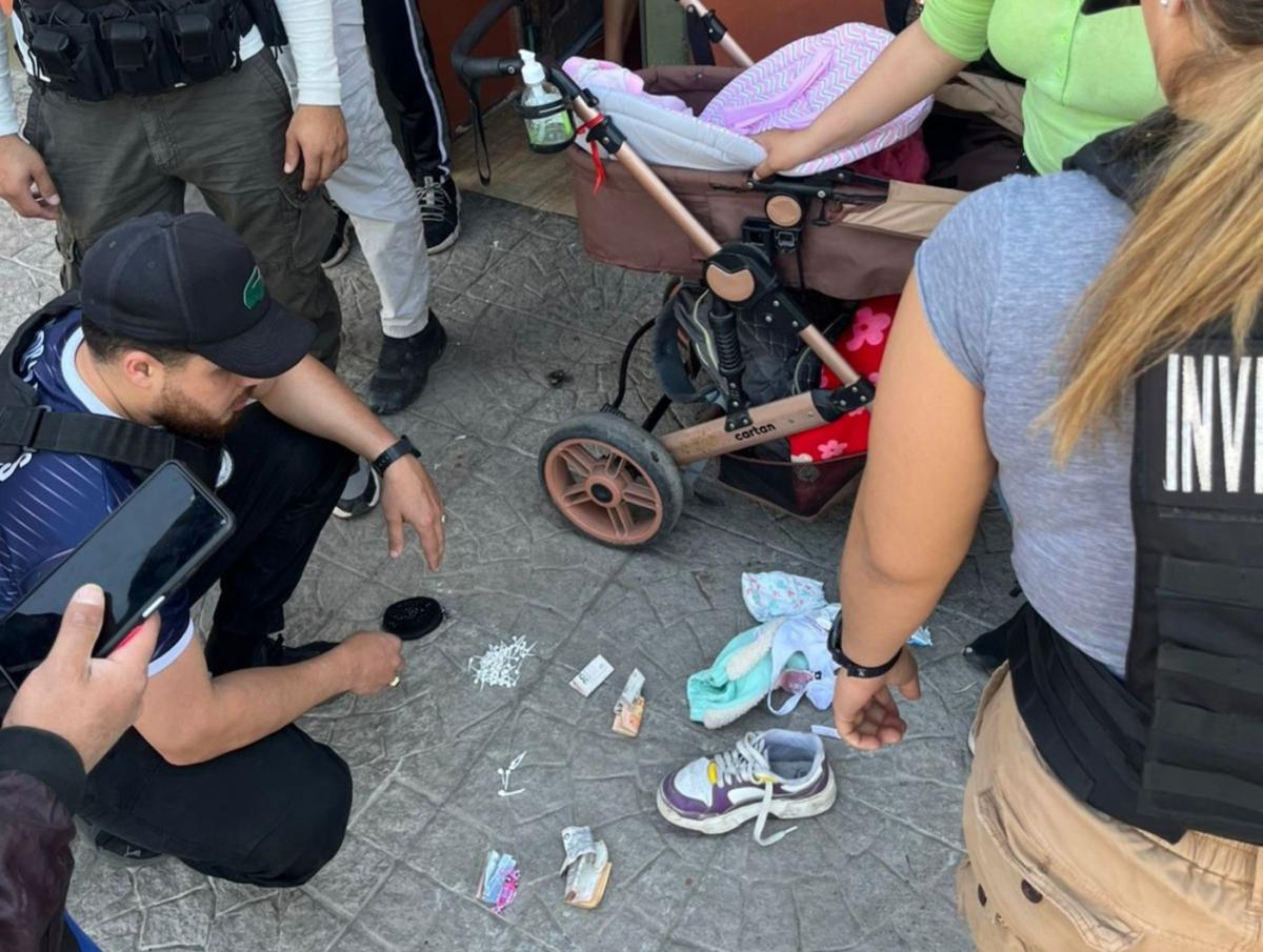 El operativo buscaba la detención de uno de los sospechosos del robo. Sin embargo, la atención de los efectivos se centró en tres mujeres que, al ver la presencia policial, intentaron huir con un cochecito de bebé.
