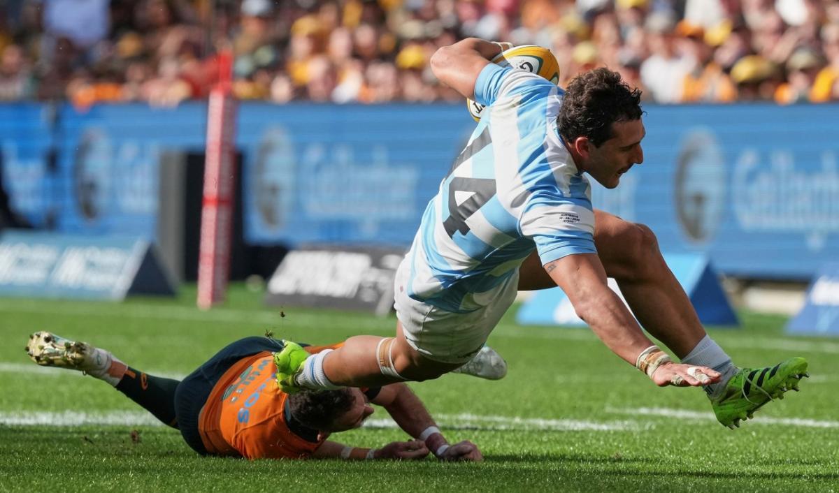 El primer tiempo fue casi un deja vu del de la semana pasada. Con unos Pumas que se plantaron en campo australiano y casi que no los dejaron jugar. Como muestra, las estadísticas marcaron que en esos 40 minutos iniciales, los argentinos tuvieron el 65% de la posesión. Y si no hubiera sido por algunos errores, sobre todo por apresurarse, la distancia en el marcador podría haber sido mayor. Bien lo vio esto desde arriba Felipe Contepomi cuando Juan Martín González, dentro de las 22 rival, usó el pie en vez de guardar la pelota y caso rompe el handy con el que se comunica con sus ayudantes en el campo. Así y todo el trabajo de todo el equipo fue titánico, con un ritmo, de parte de ambos, espectacular. El juego no tuvo respiro. Comenzó ganando Argentina con un penal de Santiago Carreras a los tres minutos, pero uno después, esa bestia llamada Joseph Suaalii que tomó la pelota a 20 metros del ingoal, hizo rebotar al 10 argentinoy se zambulló en la tierra prometida. Párrafo aparte para los dos centros de Australia: Suaalii y Hunter Paisami son temibles y fueron ellos los encargados de poner siempre adelante a su equipo. Pero si hay que seguir destacando jugadores, Julián Montoya ya nos tiene acostumbrados a ser figura. El capitán tapó una pelota pateada tras un free kick, le ganó en carrera a Nic White y puso adelante a los argentinos. ¿Más para destacar? Gonzalo García llegó para quedarse. El tucumano está cada vez más aplomado con el 9 en la espalda y por él pasa todo el juego del equipo. Además, de guapo no se lo van a llevar por delante. Kremer, Gonzalez Chocobares, Cinti y Mateo Carreras, imparable cada vez que le dan un metro, fueron figuras en la primera parte y, ya cansados, pusieron la vara muy alta.