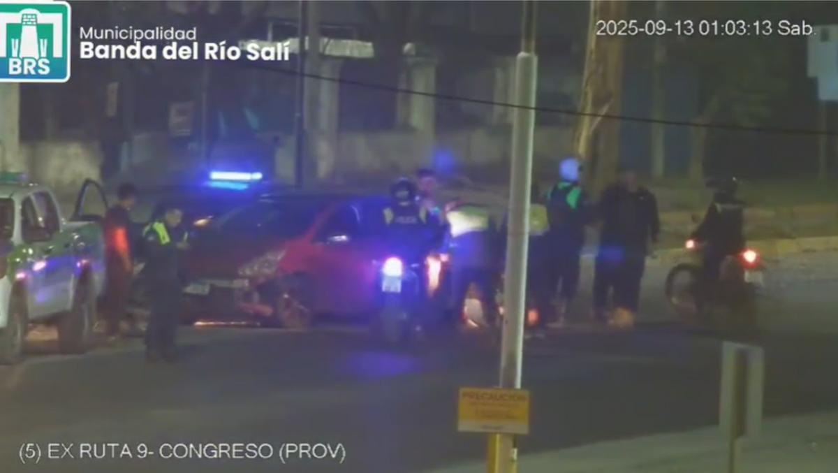 En las imágenes se observa cómo uno de los uniformados desciende de la camioneta para intentar interceptar al vehículo en fuga, que continuó su marcha hacia el norte en dirección a Banda del Río Salí. Los operadores del Centro de Monitoreo Municipal, al advertir la maniobra, emitieron la alerta inmediata a los vigías de la zona.