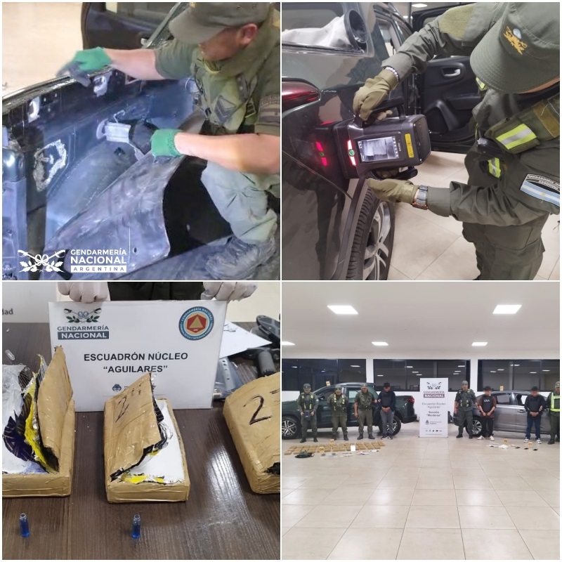 Los efectivos decidieron analizar la camioneta y descubrieron que los paneles presentaban algunas anomalías. Con autorización judicial, trasladaron a los sospechosos hacia el destacamento que tiene la fuerza en Aguilares. Con la ayuda de un escáner móvil confirmaron que los sospechosos habían escondido 41 panes de cocaína que pesaban 44 kilos.