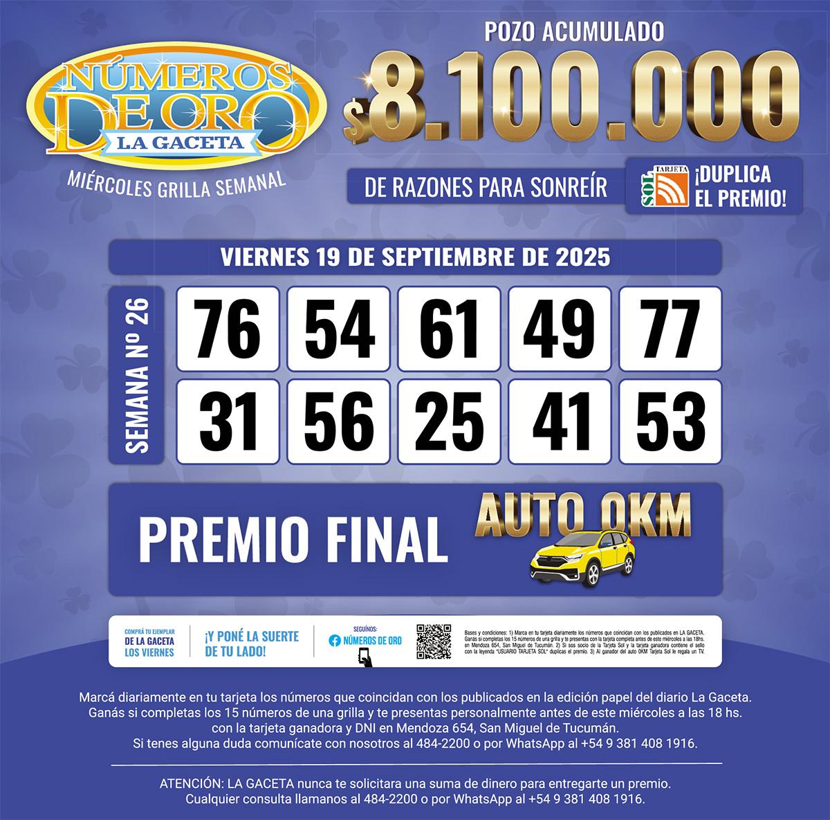 Los Números de Oro de LA GACETA del 19 de septiembre de 2025