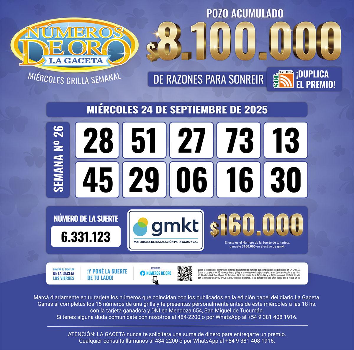 Los Números de Oro de LA GACETA del 24 de septiembre de 2025