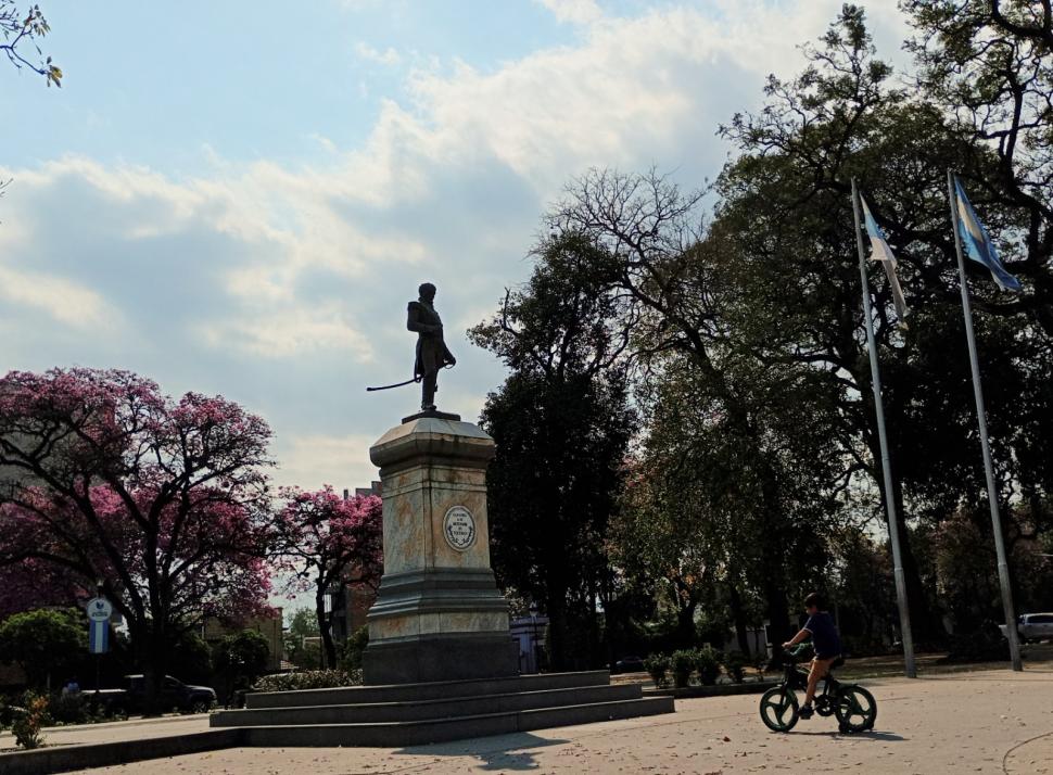 PLAZA BELGRANO. La estatua de bronce, obra de Francisco Cafferata.