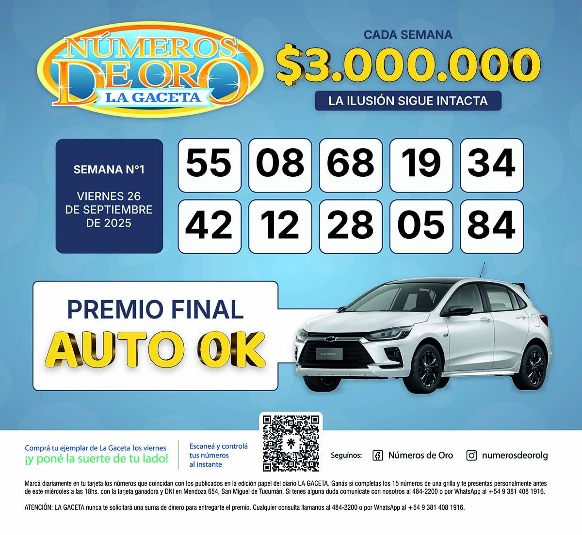 Los Números de Oro de LA GACETA del 26 de septiembre de 2025