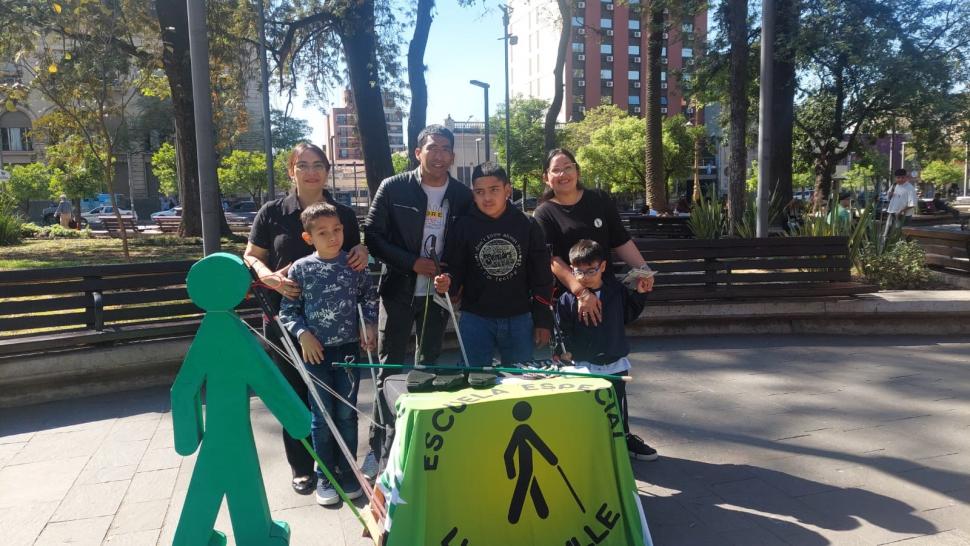 Entre folletos, bastones y sonrisas, docentes y alumnos de la escuela Luis Braille salieron a concientizar a la sociedad sobre el “Día del bastón verde”, una fecha que busca visibilizar a las personas con baja visión.