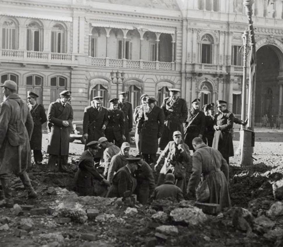 El 15 de junio, el Vaticano excomulgó a Perón. Al día siguiente acontece uno de los hechos más criminales de la historia argentina: el bombardeo de la Plaza de Mayo. Una escuadra aeronaval que debía rendir homenaje a Eva Perón atacó la Casa Rosada al mediodía: cientos de inocentes murieron por las bombas que cayeron en el mismo solar donde una década atrás, el 17 de octubre de 1945, cientos de miles de obreros se congregaban para reclamar la libertad del coronel que había pasado de ser vicepresidente de la Nación durante la presidencia de facto de Edelmiro Farrell a preso político en la isla Martín García. El objetivo, declararon los perpetradores de la masacre del 54, era matar a Perón. En cambio, ultimaron a ocasionales transeúntes que iban camino a su trabajo.