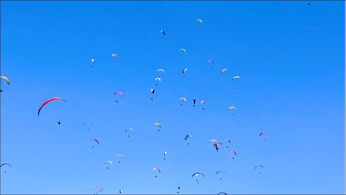 COLORES SOBRE LOMA BOLA. Más de 80 pilotos participaron del cierre del Campeonato Argentino 2025 de parapente en la Sierra de San Javier. Gentileza Matías Fortini
