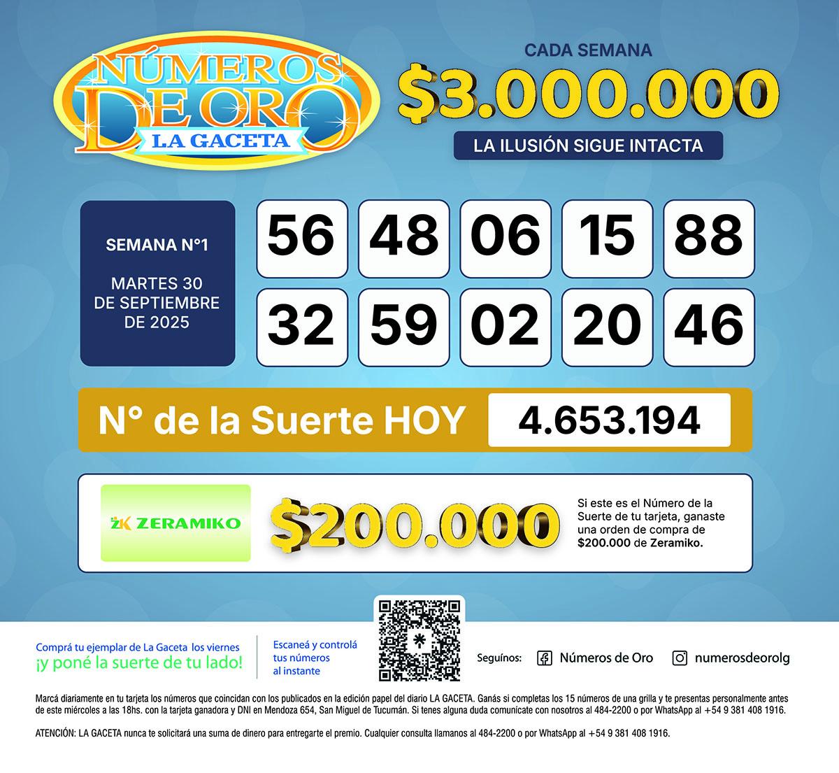 Los Números de Oro de LA GACETA del 30 de septiembre de 2025