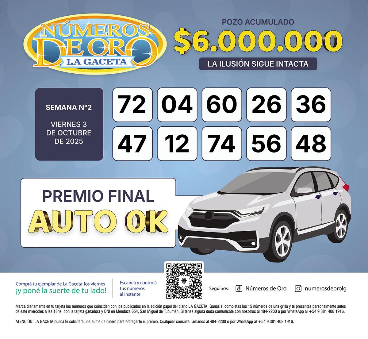 Los Números de Oro de LA GACETA del 3 de octubre de 2025