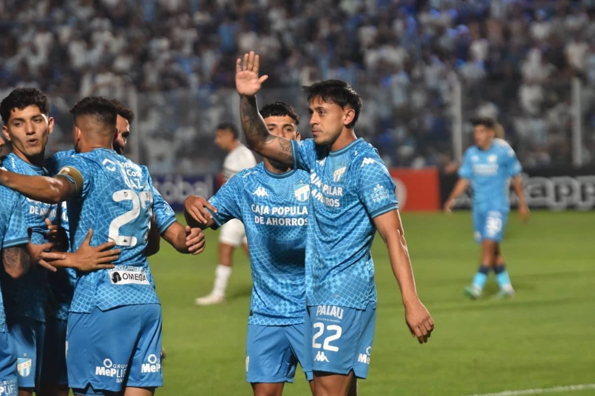 FESTEJO. Ramiro Ruiz Rodríguez anotó el primer tanto para el "Decano". OSVALDO RIPOLL/LA GACETA.