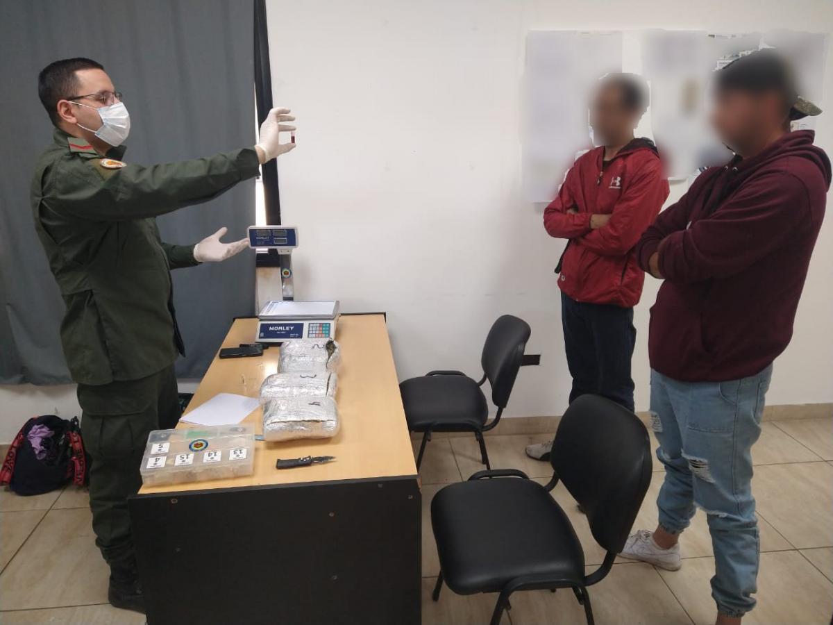 Durante la inspección de la bodega del ómnibus, los gendarmes percibieron un fuerte olor característico a cannabis sativa, lo que los llevó a revisar un bolso de mano sospechoso.
