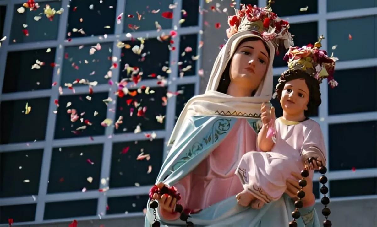 La celebración principal del 7 de octubre está dedicada a la Virgen María bajo la advocación del Rosario, una práctica de oración que invita a meditar los misterios de la vida de Cristo junto a su madre.
