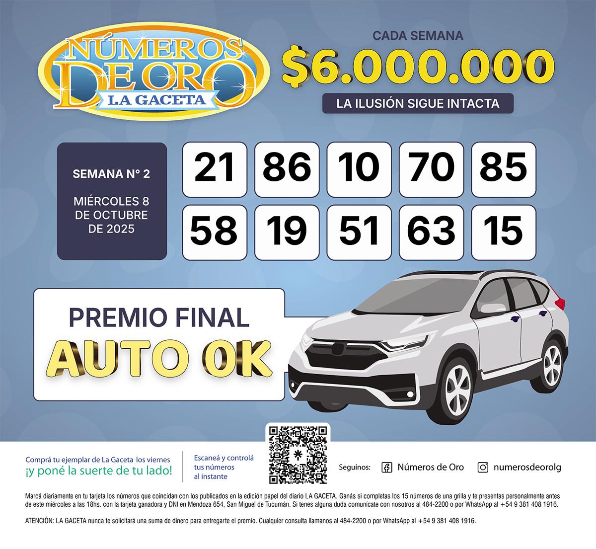 Los Números de Oro de LA GACETA del 8 de octubre de 2025