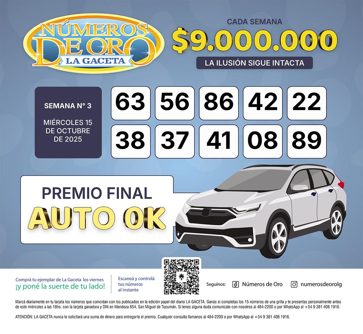 Los Números de Oro de LA GACETA del 15 de octubre de 2025