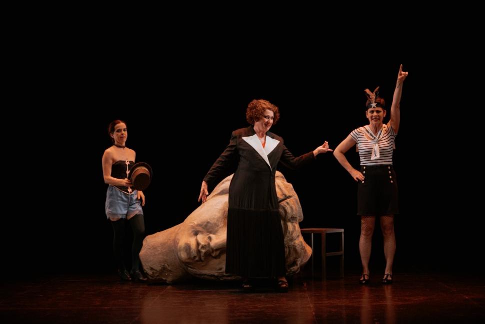 Una gran cabeza de estatua yace de costado en el medio del escenario. Desde detrás de ella aparecen las tres actrices españolas con una versión modificada de la letra del tango “Por una cabeza”, en clave de derechos y luchas feministas, la primera y principal por lo más obvio: seguir vivas. Que un reclamo de esa naturaleza sea la apertura de “Tejedoras de abismos”, la obra española presente en el Festival Internacional de Teatro de Córdoba, nos enfrenta con el grave estado de situación global en torno a la violencia de género. Por causalidad, no casualidad, hablan de “cabezas cortadas de tantas mujeres” y de que “tienes que vivir” como premisa central.