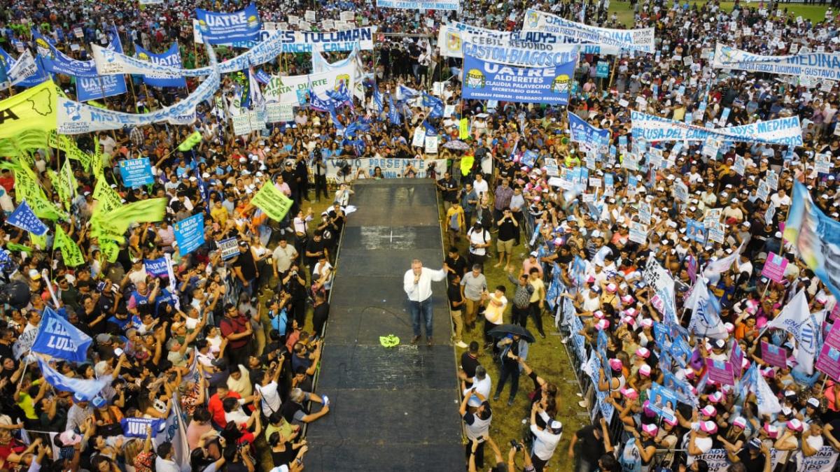 “Un 17 de octubre como hoy, hace 80 años, el pueblo argentino salió a defender a su líder. Hoy el pueblo tucumano sale a defender a sus familias y a su provincia”, expresó ante una multitud que lo ovacionó con banderas y cánticos peronistas.