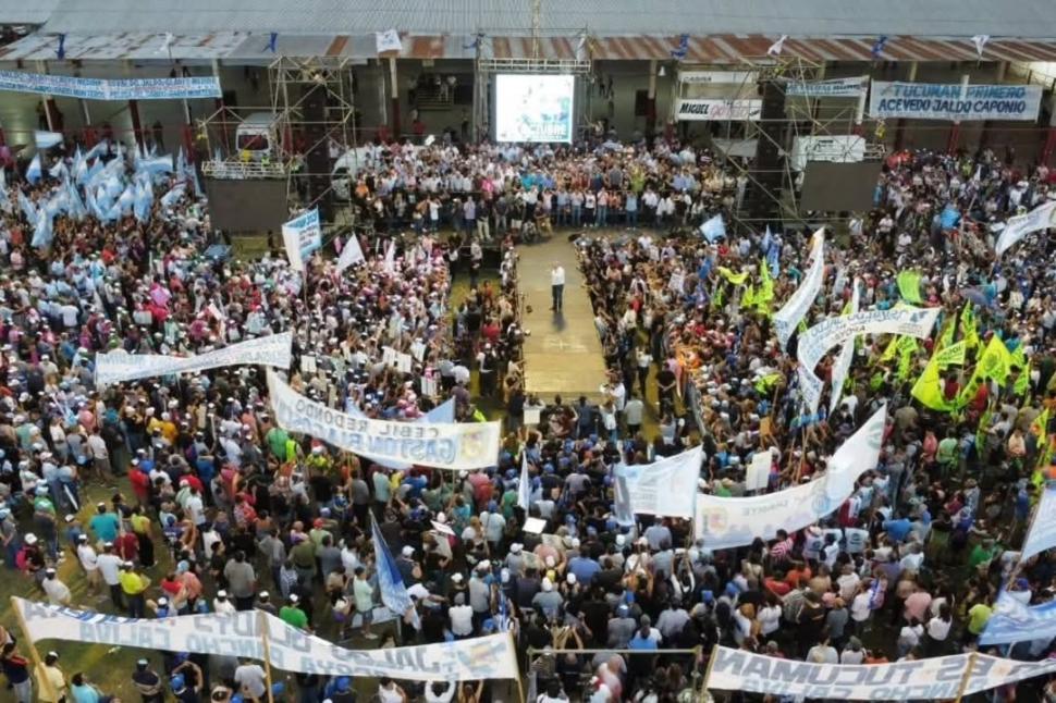 El peronismo se mostró fuerte, unido y movilizado en la comuna de Ranchillos. Una multitud desbordó las instalaciones del Club San Antonio para respaldar a los candidatos del Frente Tucumán Primero, en el 80° Aniversario del Día de la Lealtad Peronista. El gobernador en uso de licencia, Osvaldo Jaldo, encabezó el masivo acto, lanzó algunos dardos al presidente Javier Milei (La Libertad Avanza) que hoy visitará la provincia y presagió un triunfo contundente el domingo 26. “De las cuatro bancas, el Partido Justicialista va a sacar tres”, declaró ante una consulta de LA GACETA.