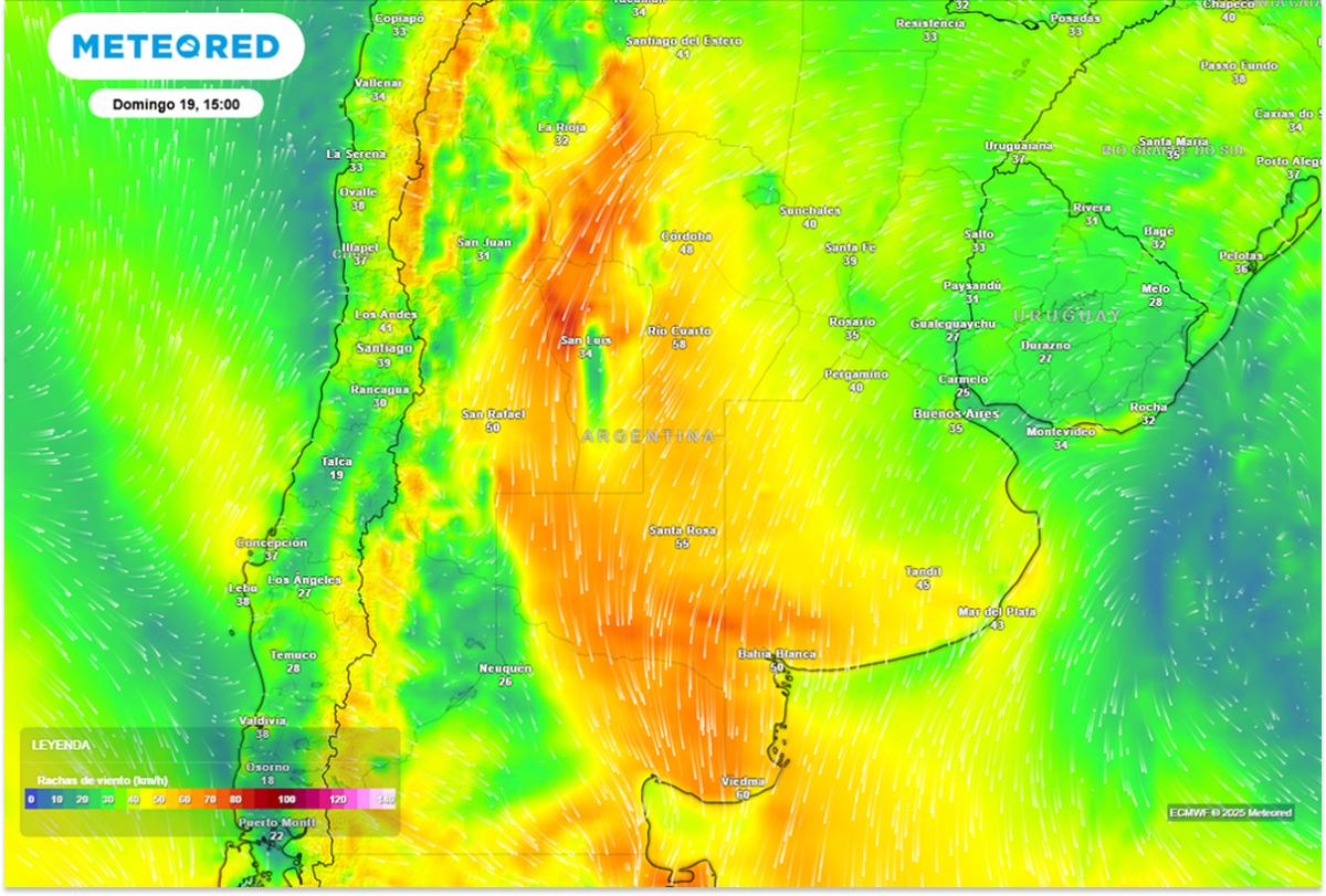 La región central de Argentina se encuentra bajo alerta amarilla por vientos que podrán alcanzar entre 40 y 60 kilómetros por hora en el sur de Córdoba, La Pampa y sudoeste de Buenos Aires. Las ráfagas intensas también llegarán al sur de Catamarca y La Rioja, este de San Juan y Mendoza y gran parte del territorio de San Luis, según datos del Servicio Meteorológico Nacional.