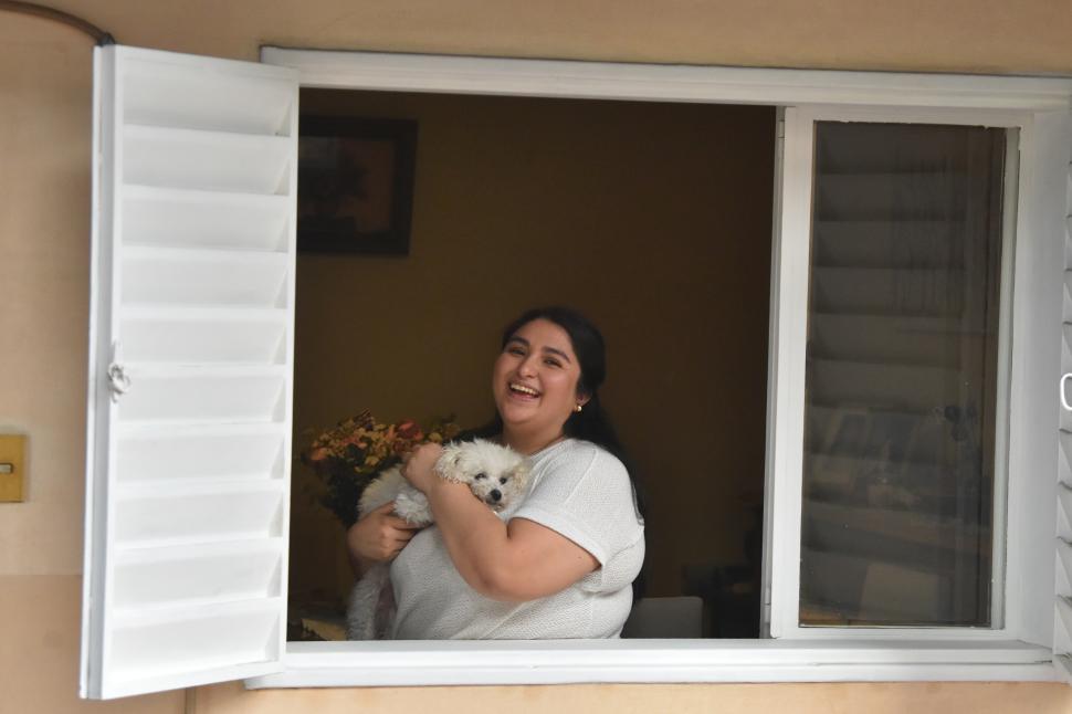 Pasadas las 16.30, Eugenia Rodríguez nos recibe en su casa. Abre la puerta con una pequeña caniche blanca en brazos. “Alzarla es la única forma para que no les ladre”, intenta anticiparse al comportamiento de “Sofi” que, hasta ese momento, no emitió ni un gruñido. Viste una remera blanca y unos jeans clásicos. Al ingresar al living, nos invita a sentarnos antes de iniciar el diálogo. Nada en esa sala habla de la presencia de una de las revelaciones tucumanas que más impacto generó en el último tiempo. La calidez del hogar muestra una Eugenia relajada y más tímida que, tal como contó su mamá al aire, se enciende con la magia del escenario.