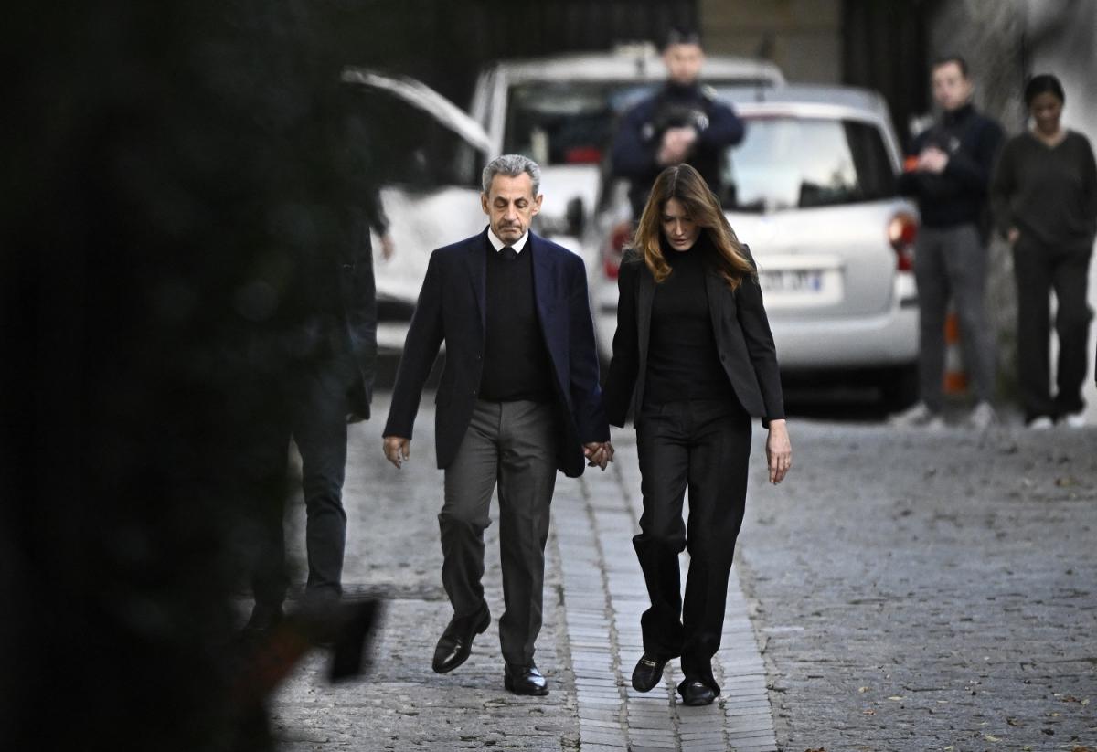 FRANCIA. Nicolas Sarkozy, acompañado por su esposa Carla Bruni, sale de su residencia para presentarse en la prisión de La Sante. AFP