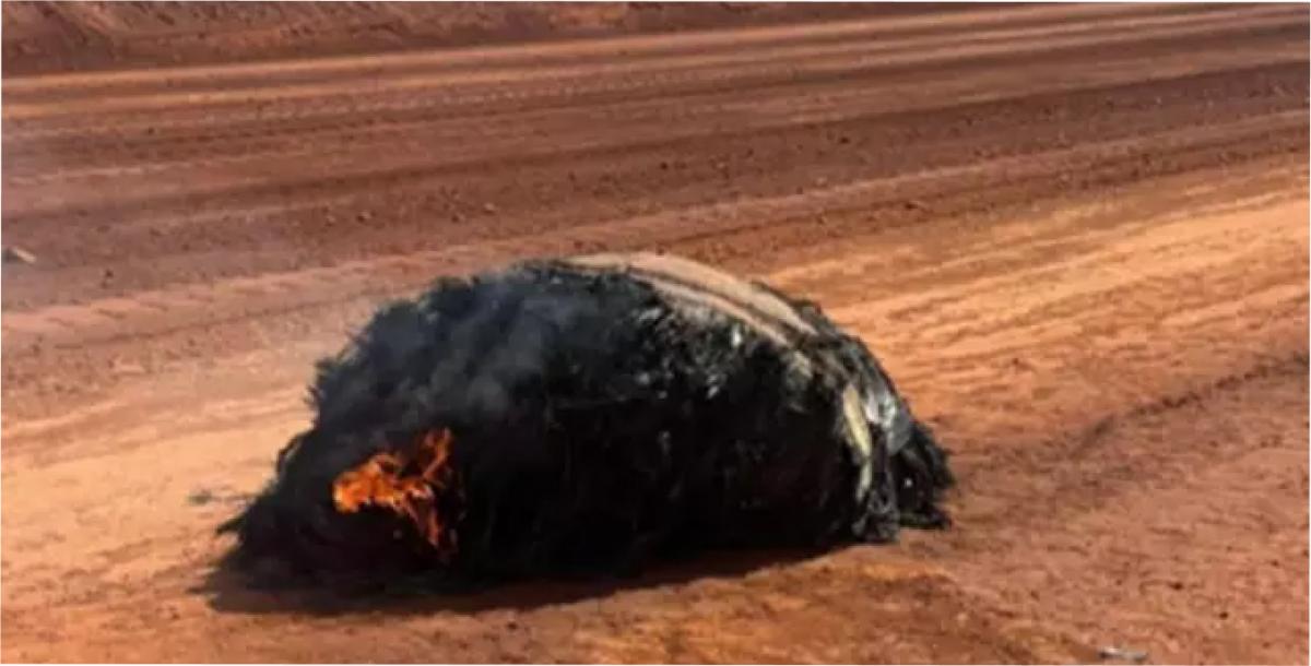 Los restos humeantes del posible fragmento del cohete chino Jielong fueron descubiertos por trabajadores de una mina.