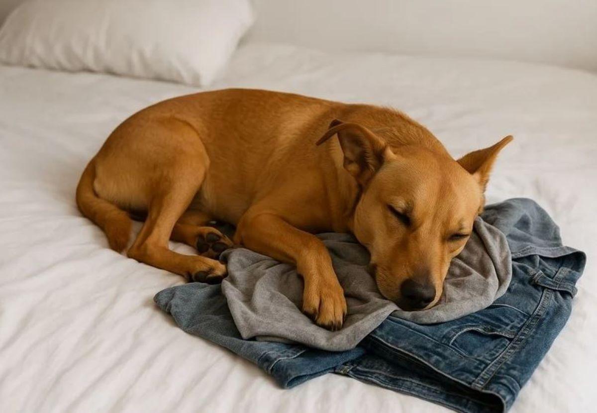 Si el perro adopta este comportamiento puede ser una señal de que experimenta soledad o incluso ansiedad por separación. Que un perro se acueste sobre las prendas no es malo, es un claro indicio de que es feliz porque tiene afecto y confianza hacia quien viste esa ropa, es la persona de referencia.