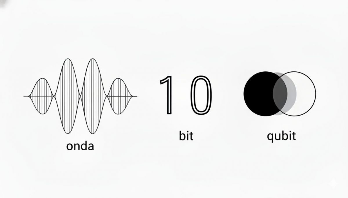 Su unidad básica no es el bit (1 ó 0), es el qubit. Y un qubit es -simplificadísimo- "un pulso que vibra". Aprovecha la dualidad onda-partícula: se comporta como una onda de probabilidad, existiendo en una superposición de infinitos estados entre 0 y 1. Pero cuando lo medimos, "colapsa" en un pulso: 0 ó 1.