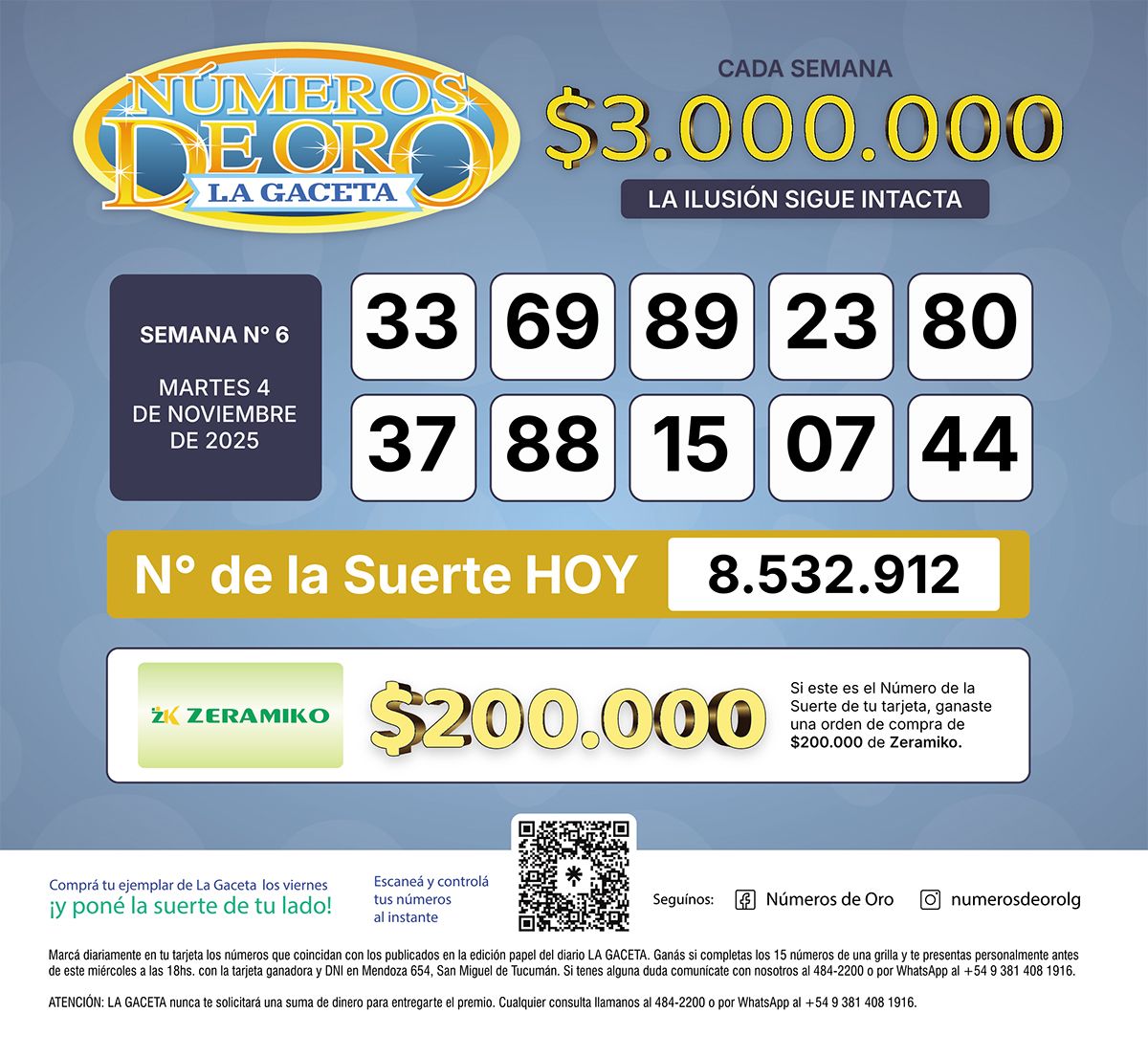 Los Números de Oro de LA GACETA del 4 de noviembre de 2025