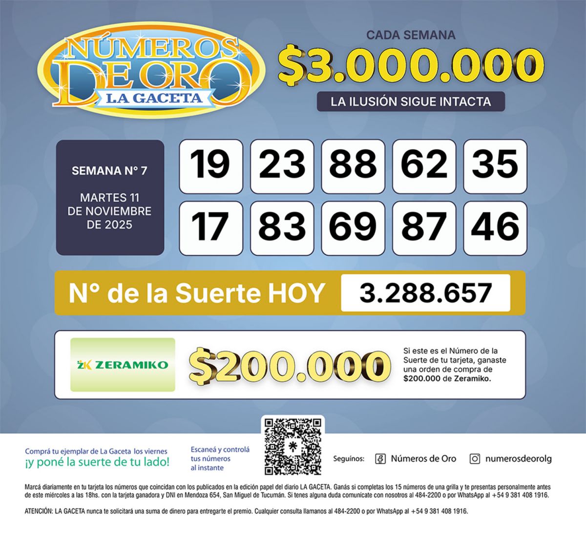 Los Números de Oro de LA GACETA del 11 de noviembre de 2025