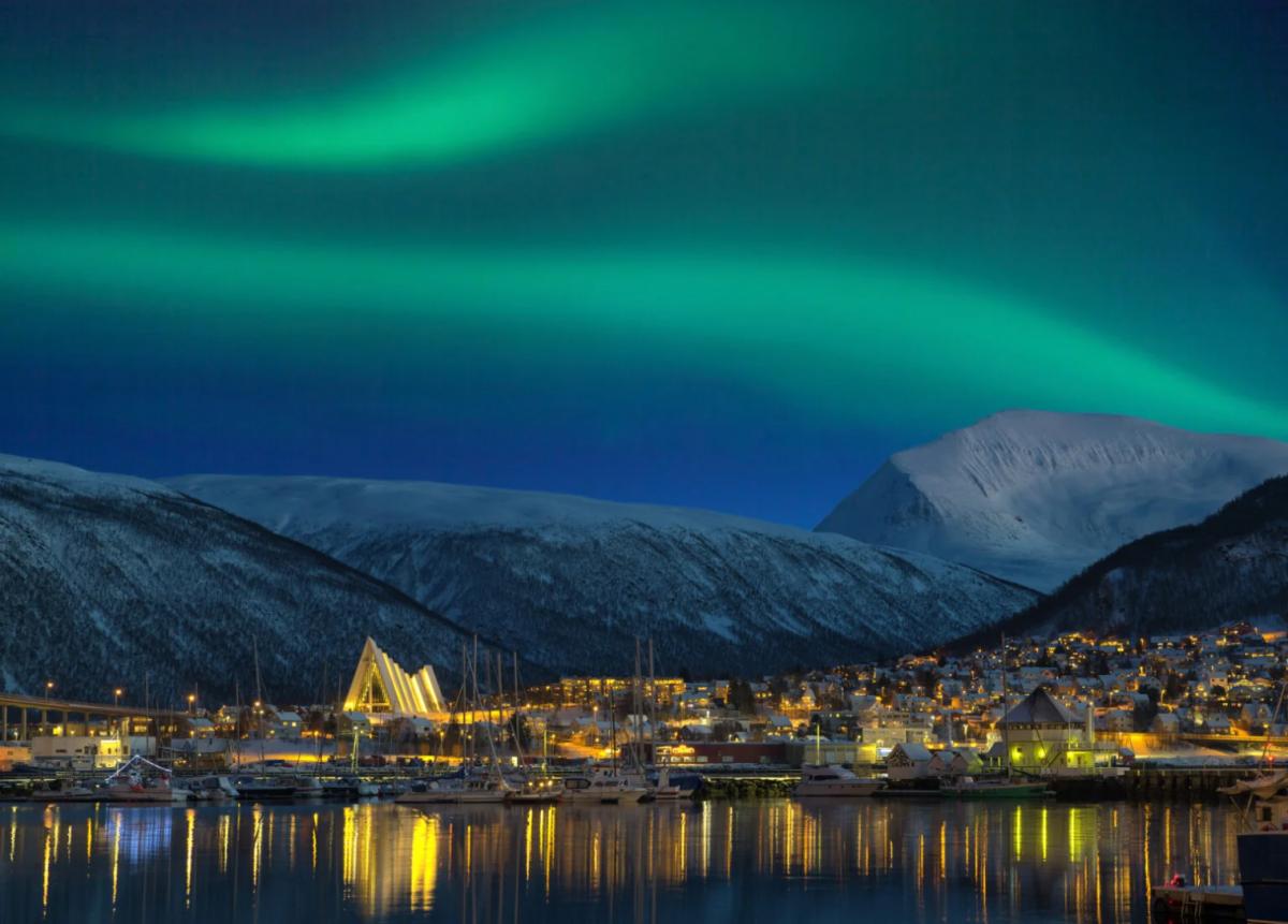 En esta ciudad del norte noruego, la noche polar comienza el 27 de noviembre y se extiende hasta el 15 de enero. A pesar de la falta de luz, Tromsø mantiene una vida cultural activa y, gracias a la Corriente del Golfo, sus temperaturas invernales son relativamente moderadas: entre -4 °C y -8 °C.